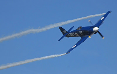 Le Hawker Sea Fury est aussi un des avions vedettes de ce meeting grâce notamment à ces volutes magiques qui forment des vortex et des mini-tourbillons causés par l'aérodynamisme de l'aile.