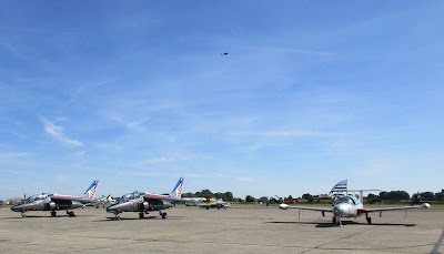 Après ce survol de l'aérodrome, je retourne vers le tarmac car les premières démonstrations vont commencer. Le premier à ouvrir ''le bal'' sera le Alphajet Solo Display (ASD) de l'Armée de l'Air et son pilote, le capitaine Philippe ''Zippo'' Castagnet, qui connaît l'Alphajet sur le bout des doigts (il l'a même piloté pendant 5 ans à la Patrouille de France).